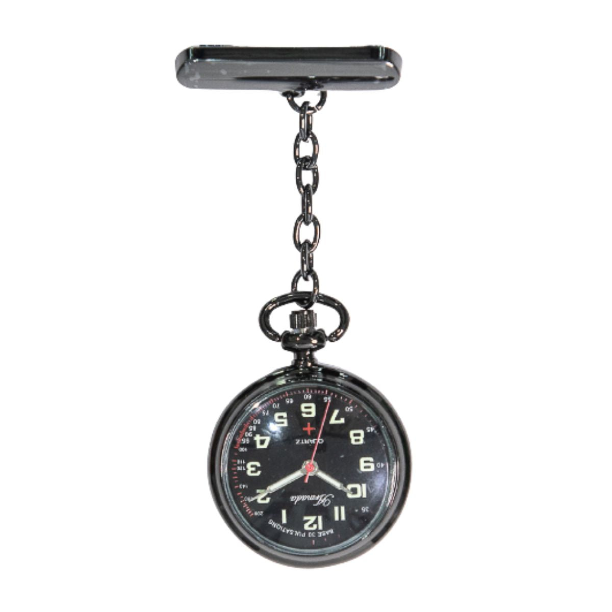 Part of the Armada range, this Gunmetal Grey nurses’ fob watch delivers clinical reliability with a personal touch. The black dial features bold white numerals and a contrasting red seconds hand for clear pulse counts at a glance, while the engravable case back lets you add a name, date or message - ideal for graduations and gifting.