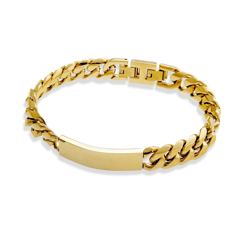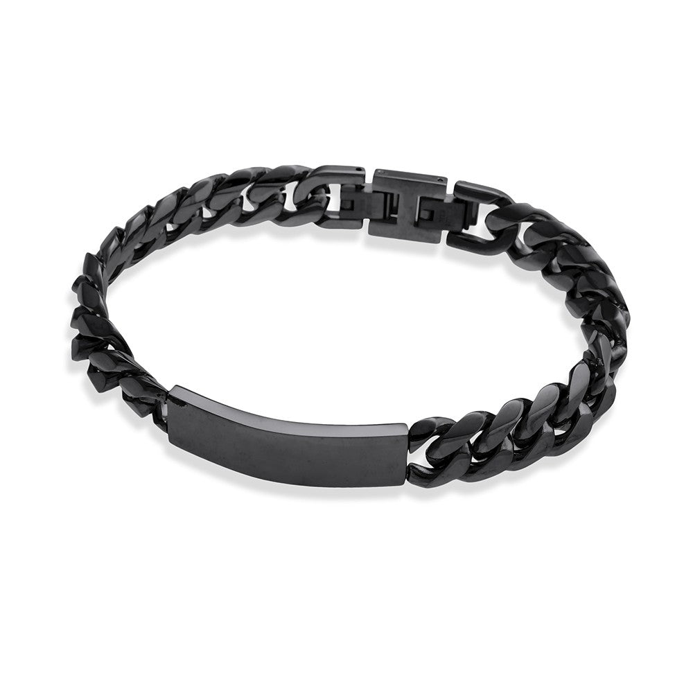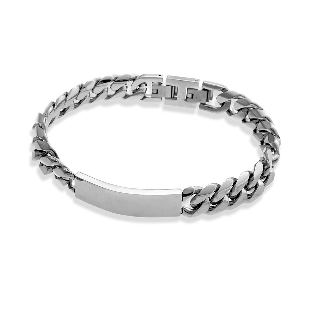 This stainless steel I.D. bracelet is highly durable and scratch-resistant, and is available in a shiny black, polished silver and gold finish. With a 40x12mm ID Plate, add your personal touch with a name, date, or description with our engraving service.