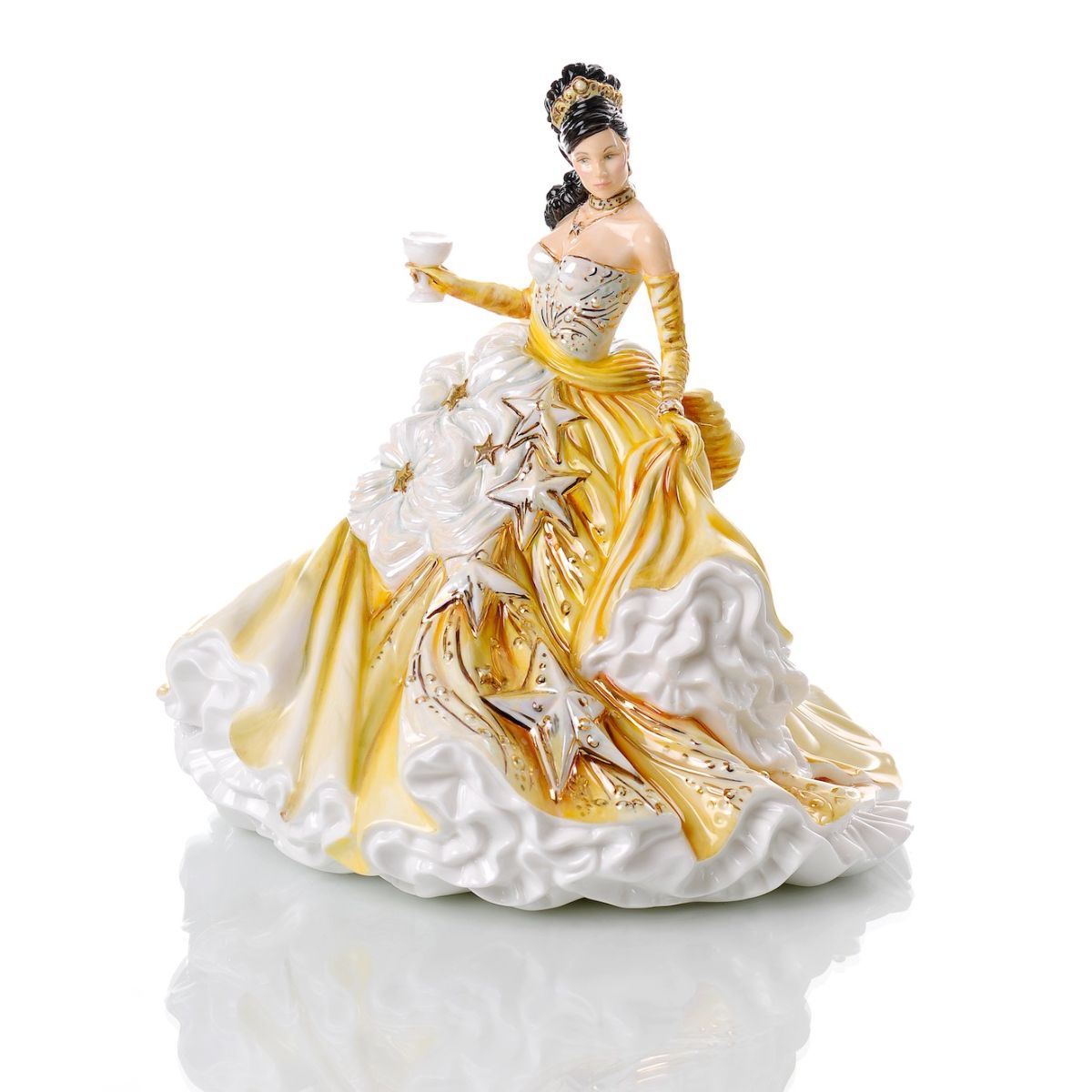 Designed by internationally renowned modeller Valerie Annand and hand-painted by master artist Dan Smith, this figurine features a sweeping golden gown adorned with sculpted stars, shimmering folds, and exquisite detailing that comes alive in the light. A timeless keepsake, she’s the perfect gift for birthdays, anniversaries, graduations, special achievements or any moment worth remembering forever.