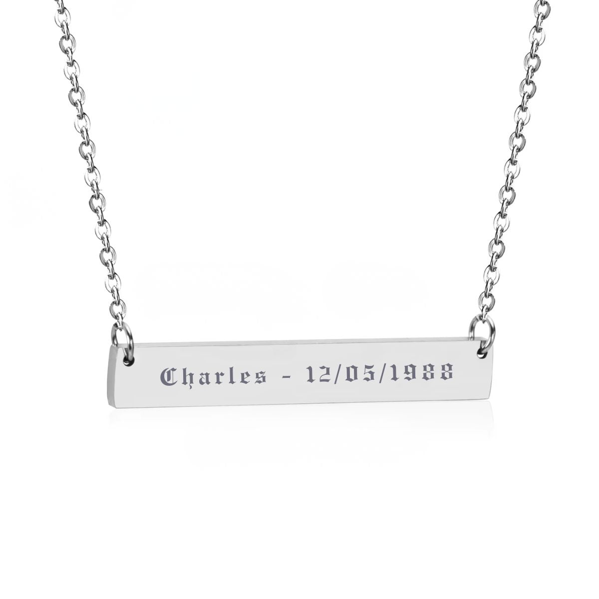 Engravable 40x7mm Horizontal Bar Stainless Steel Necklace - 45-50cm
