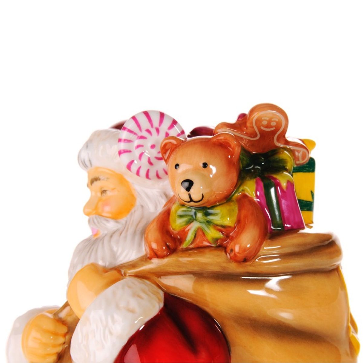 Bring the magic of Christmas into your home with this beautifully crafted Father Christmas Figurine, made from premium fine bone china. Designed with rich festive detail, this timeless piece captures Santa in his classic fur-trimmed red coat, carrying a sack overflowing with gifts, sweets and a cheerful teddy bear.