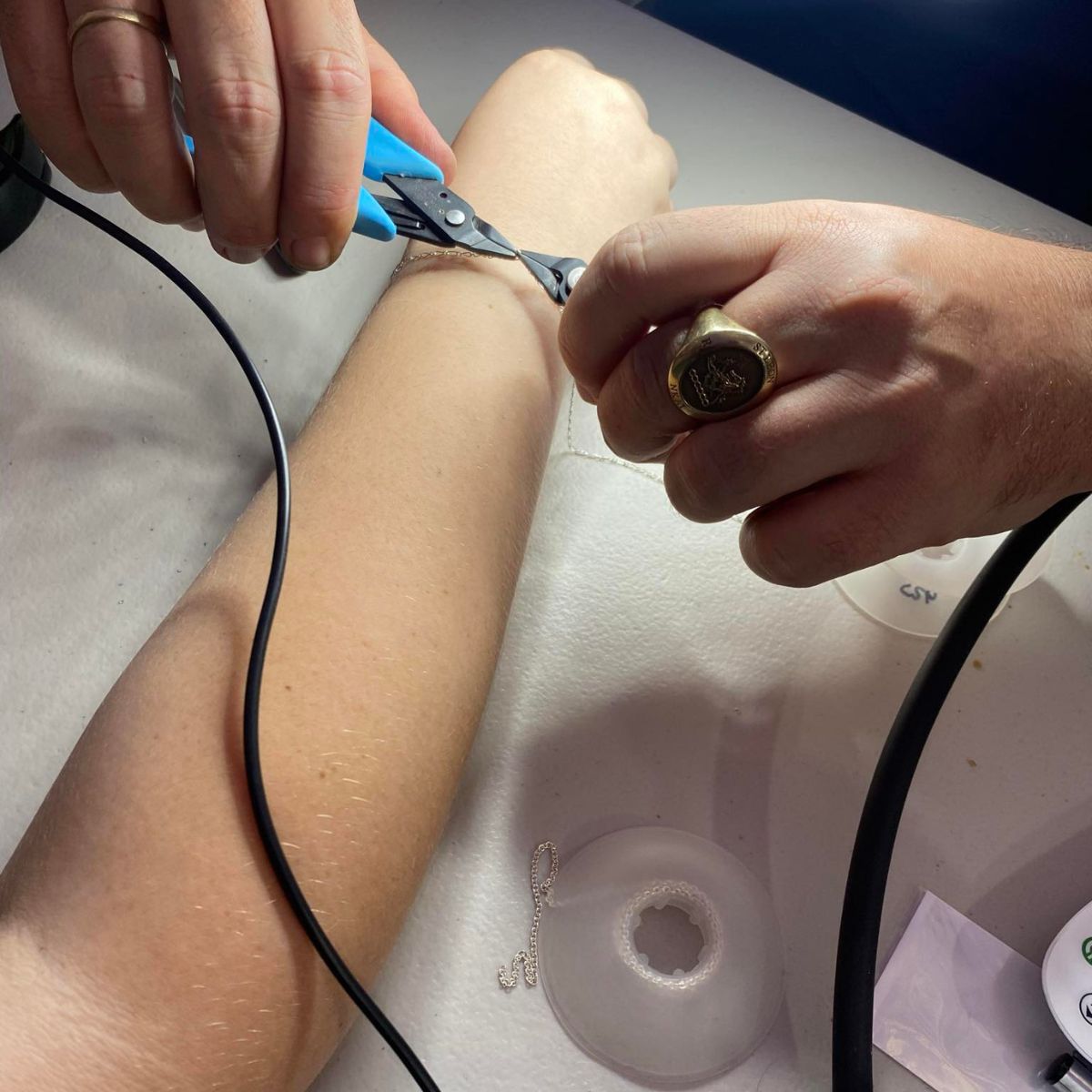 Permanent jewellery is a bracelet, anklet or necklace custom-fitted to you and welded closed in our studio, creating a seamless, clasp-free piece designed for everyday wear.